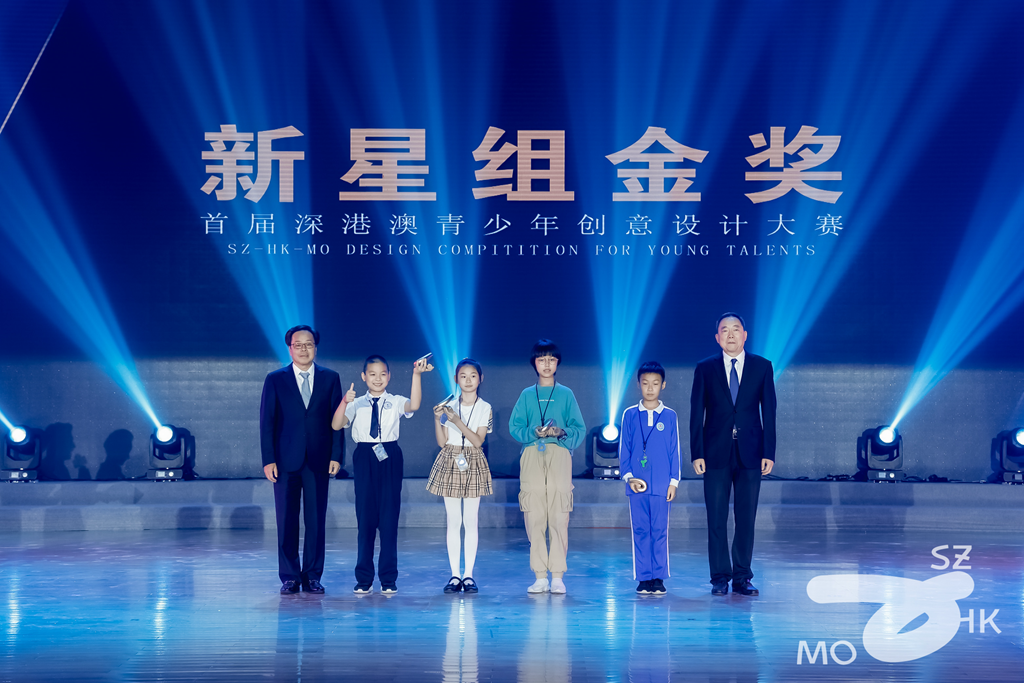 用创意点燃梦想,用设计点亮未来,经过近2个月的宣讲、动员、参赛,大赛共收到来自深港澳三地中小学生的5293件参赛作品。经过激烈角逐,最终来自香港圣保禄学校的区卓荞、黄宝瑶凭借“Miss Pauline 2.0-情绪支援机械”项目,来自深圳明德实验学校(集团)的熊韵馨、宋宣禾凭借“自制振动台的抗震建筑结构模型的研究”,来自深圳市南山实验教育集团麒麟二中的王寅徽凭借“未来三部曲”,来自深圳市南山区文理实验学校(集团)文理学校的孟子玲、赵欣怡、叶静微凭借“薪火永续·万向支架烛火滚灯”斩获新锐组金奖。