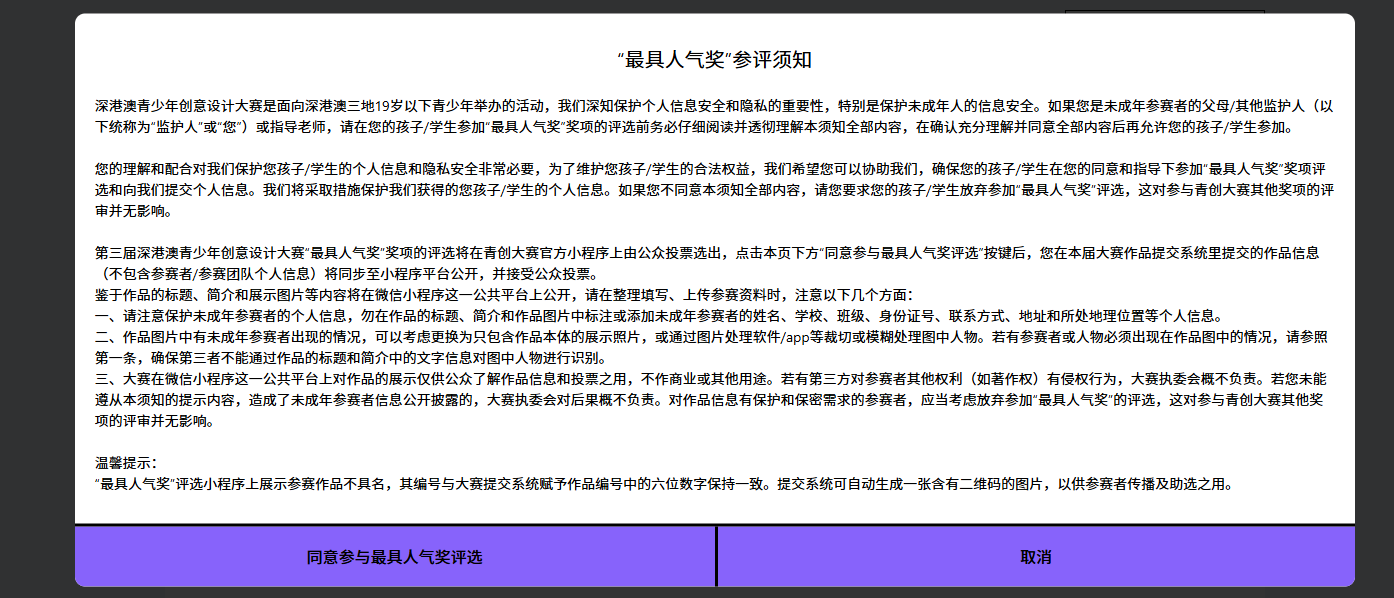 参与本次“最具人气奖”评选需要仔细阅读弹出的“最具人气奖”参评须知。