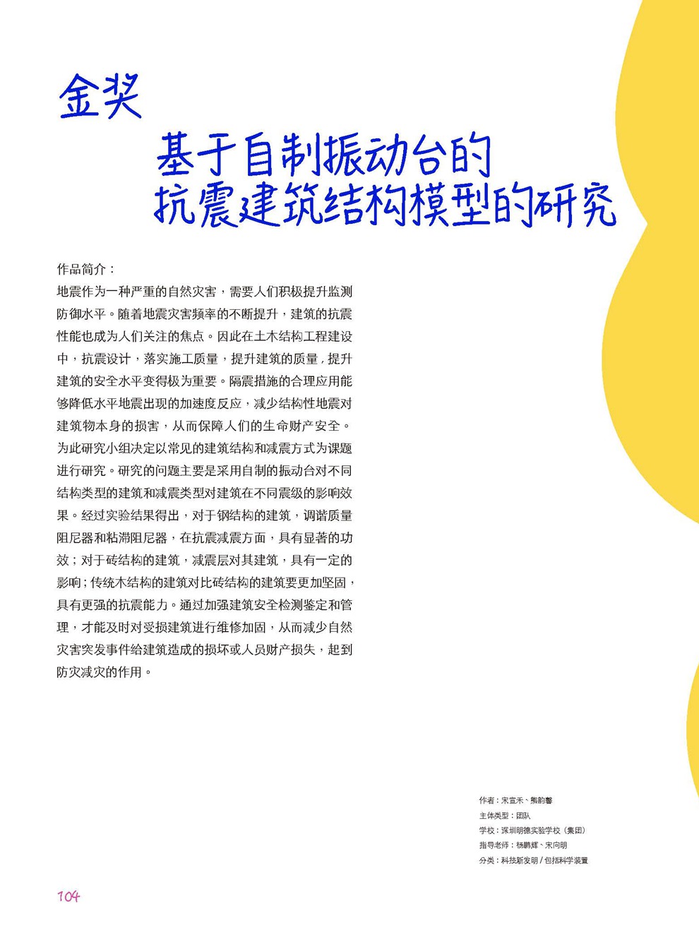 (金奖)基于自制振动台的抗震建筑结构模型的研究